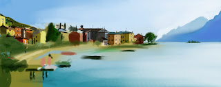 Often times i tend to paint pictures based on somebody else's photos, so i went looking thru my holiday snaps to see if i could find some inspiration from some of my photos, and lo and behold it turns out that Italy is 'inspiring'.! I know, who'd of thunk it? So i painted this one of the mountains across Lake Garda looking west from Malcesine i think, or maybe it was a bit further to the south... Anyway, we stopped for Michelle and Dara to have a swim in the lake and i read my book on swarm intelligence and took a few photos and enjoyed the evening sunshine. Sun-starved Irish people need as much sun as they can get!!